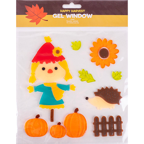 Ablakzselé 25x20 cm madárijesztő sünivel és tökkel