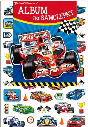 Album öntapadó matricákra, 16 x 29 cm, 45 db hologramos matrica, versenyautók