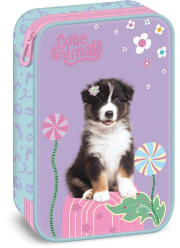 Aussie, kutyás tolltartó, belső emeletes, üres, Ars Una. Többszintes, töltetlen, cipzáras tolltartó. Belül textillel bevont merev lapokkal, gumis kialakítással 30 ceruza számára az írószerek tárolásához és egy cipzáras belső zsebbel. Méret: 225mm x 155mm x 45mm