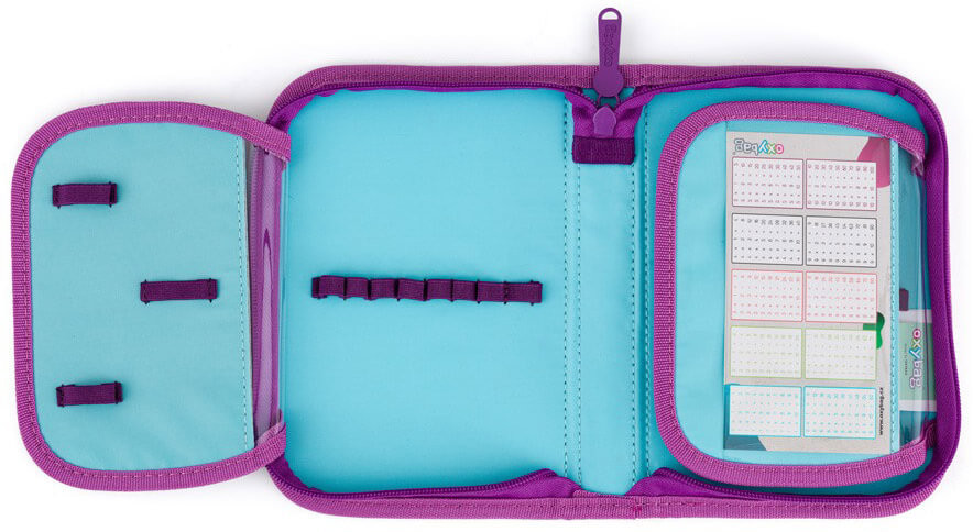 Axolotl tolltartó klapnis, üres, OXY 2026. Méret: 14x21x3,5cm. Üres tolltartó, 25 gumis hellyel.