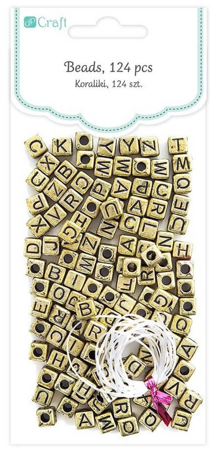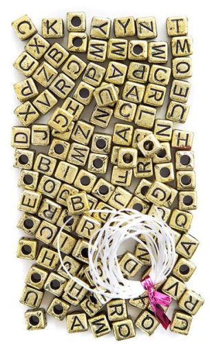 Betű gyöngyök, arany kocka, 124 db/cs