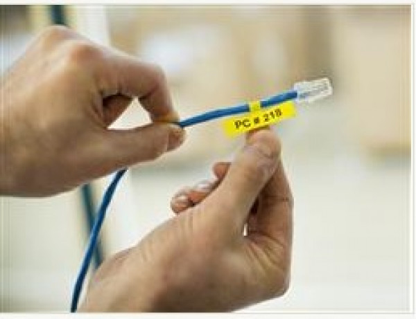 FLe-6511 24 mm széles szalagon elővágott 72db 45x21 mm-es zászlócímke, sárga alapon fekete betűs, nem laminált feliratok nyomtatásához. Kompatibilis nyomtatók: PTP900W, PTD800W, PTP950NW