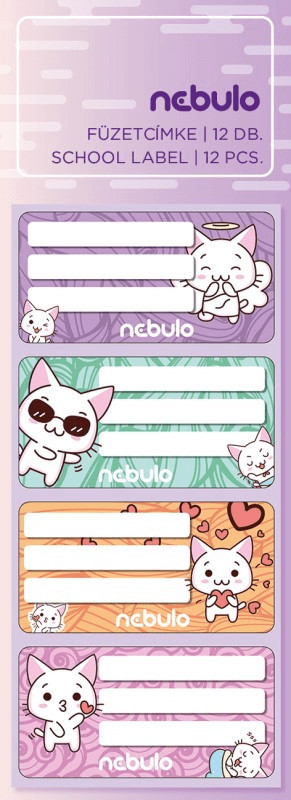 Cicás füzetcímke 12 db-os, Nebulo. Öntapadós papír füzetcímke, egy csomagban különböző mintákkal.