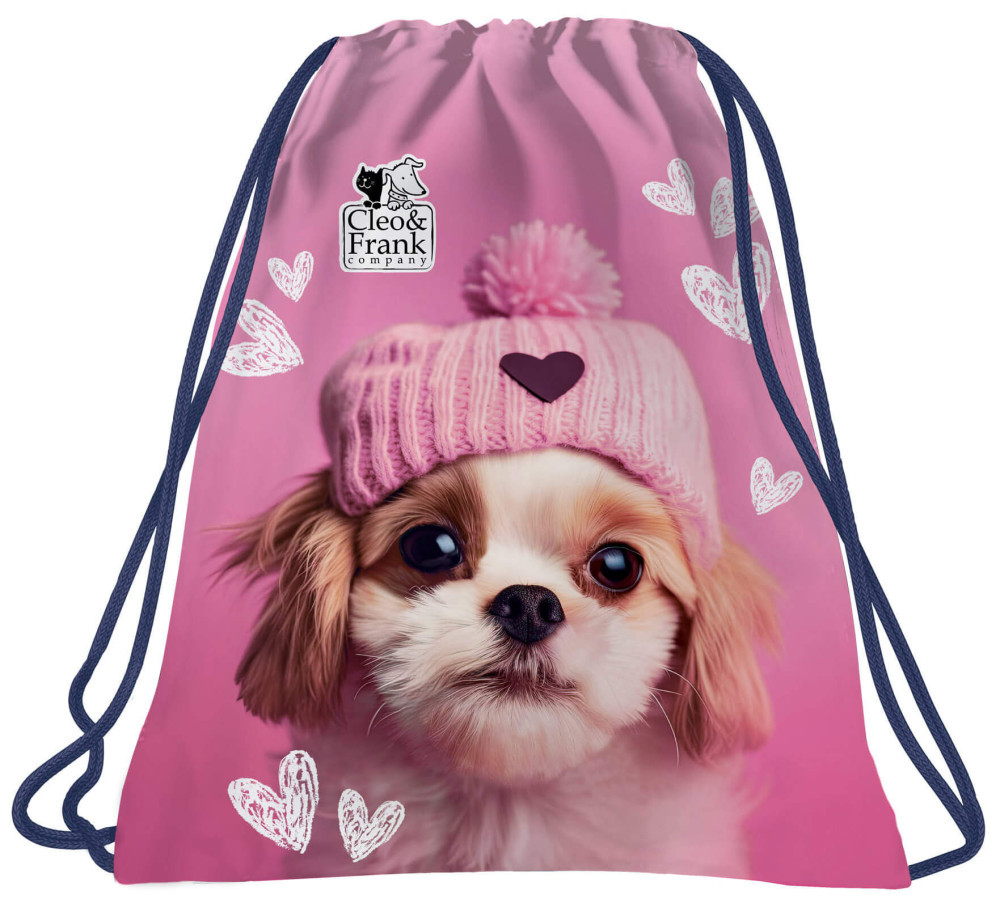 Cleo and Frank tornazsák, 41x35cm, CF42, kutyás, rózsaszín. Dupla zsínóros, hordhatod a kezedben, a válladon vagy a hátadon is. Méret: 41x35cm. Súly: 45g