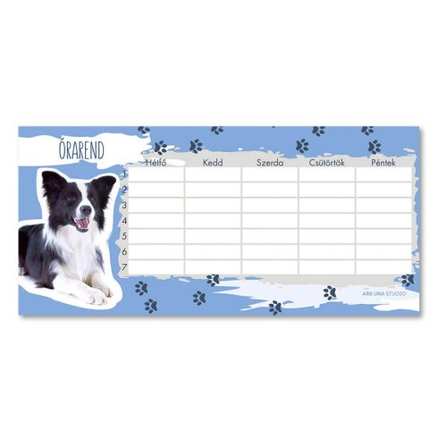 Cuki állatok órarend, 23x11 cm, kétoldalas, Border Collie