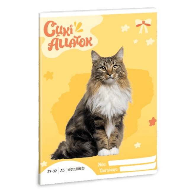 Cuki állatok tűzött füzet A/5, 32 lap kockás, norvég erdei macska. Négyzethálós füzet alsósoknak Mérete: A/5 Lapok száma: 32 Lekerekített sarkokkal Borító: 250 gr-os műnyomó Belső: 75 gr-os papír margózott oldalakkal 27-32-es szabvány szerinti lapokkal