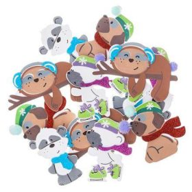 Dekorgumi, öntapadós, állatok téli ruhában, 3D, 12 db-os