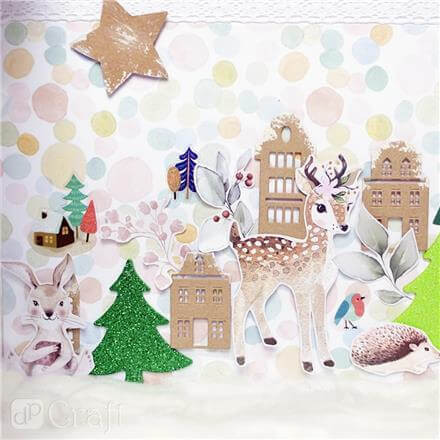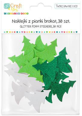 Dekorgumi, öntapadós, karácsonyfák, csillogó, 30 db-os, fehér-zöld
