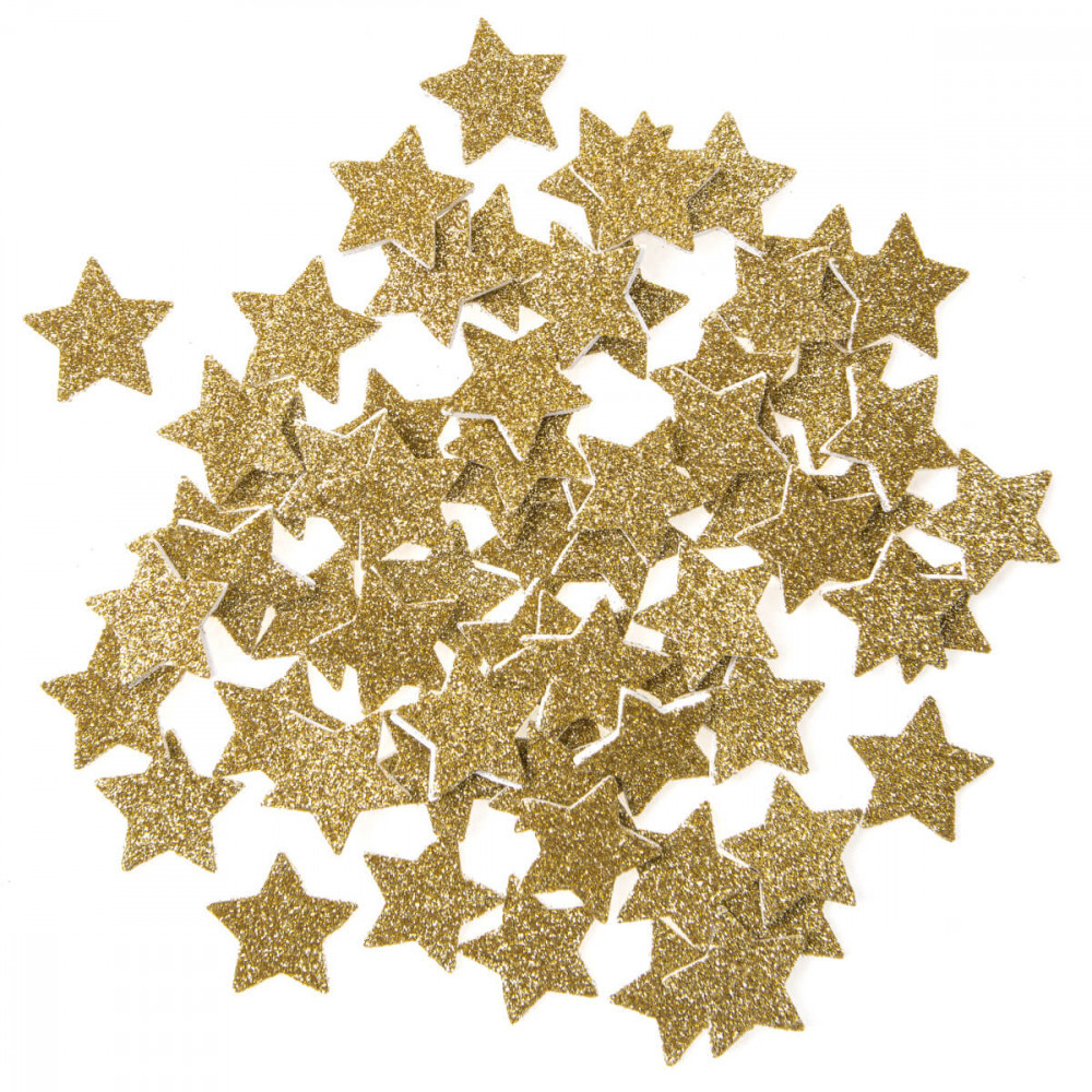 Dekorgumi, öntapadós, sárga csillagok, csillogó, 70 db/csomag