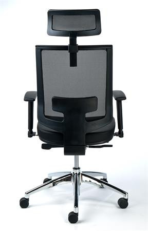 Exkluzív fejtámaszos irodai szék, fekete bőrborítás, feszített hálós háttámla, alumínium lábkereszt, MAYAH "Maxy"