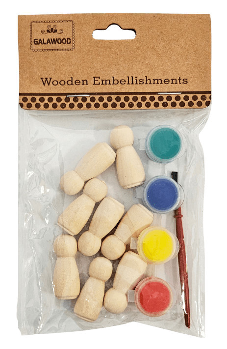 Fabábuk társasjátékhoz, festhető, dekorálható, 8 db/cs, 35mm magas figurák. A csomagban 4 db különböző színű festék is található.
