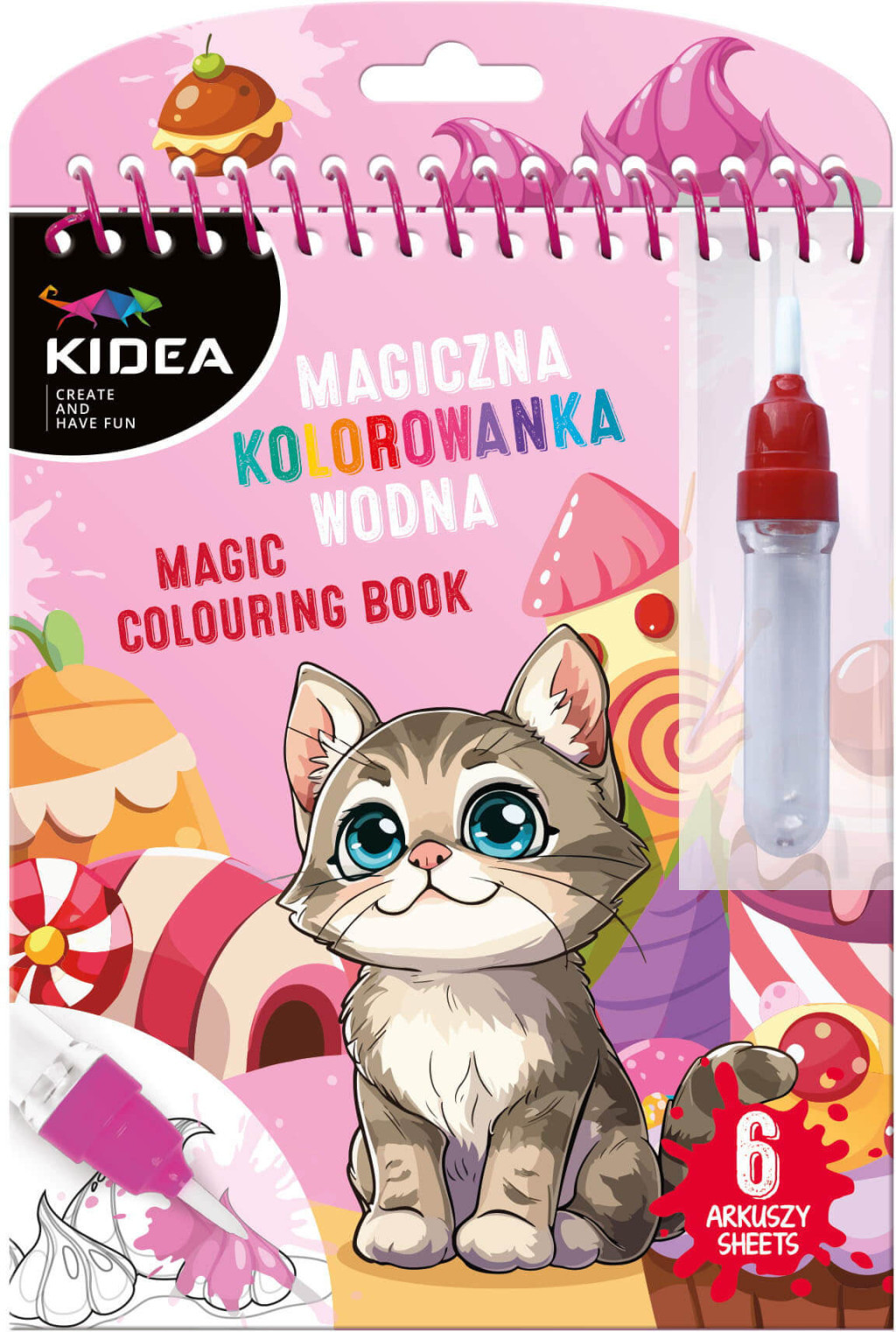 Festés vízzel, cicák, Kidea mágikus színező, Kidea, 6 oldalas. Paca és maszatolás nélkül festhet most gyermeked ezzel a vizes filctollas színezővel. A vizes filctoll könnyen megfogható, így az apróságok számára sem okoz gondot a színezés. Ahogy a vizes filctollal átszínezi a képet, előjönnek a színek. Pár perc után, mikor el kezd megszáradni, a színek eltűnnek így újrakezdhető az alkotás. Kiváló játék utazáshoz is. A színező mérete 15x19cm.