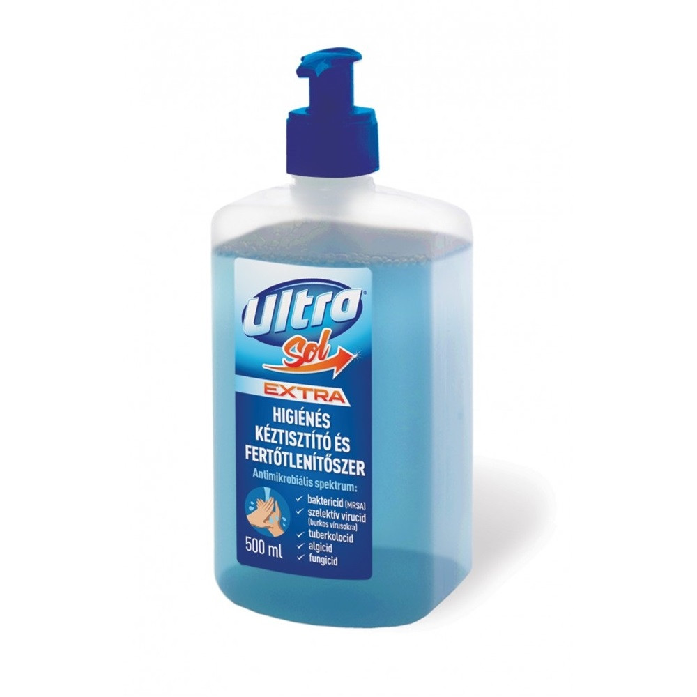 Folyékony szappan pumpás 500 ml fertőtlenítő hatással Ultra Sol Extra termék alkalmazásakor ügyeljen a biztonságra!