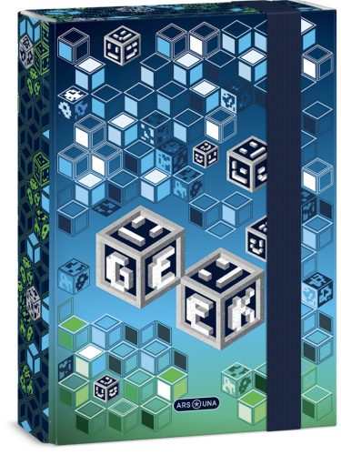 Geek füzetbox A/5, Ars Una. A/5 méretű füzetbox. Kemény, tartós kartonból, 4 cm-es gerinccel, fényes fóliával, 7 mm széles gumipánttal. Belseje egy színnel nyomott. Füzetek, iratok tárolására . Méret: 220mm x 160mm x 35mm