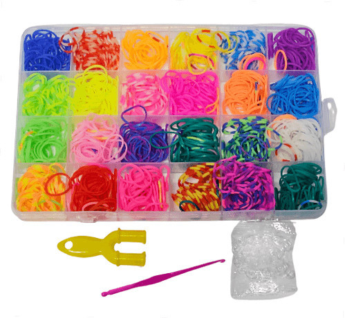 Gumikarkötő készítő szett, (gumigyűrűk, kapcsok) A szett 24 különböző színű gumigyűrűt, eszközöket, kapcsokat tartalmaz. A loom bans gumigyűrűk segítségével különböző karkötők, figurák "horgolhatók".