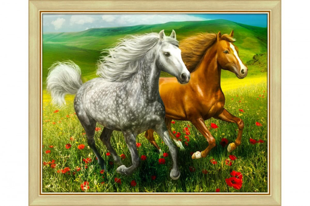 Gyémántfestés szett, lovak a réten, 50x40cm