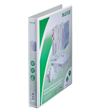 Gyűrűs könyv, panorámás, 2 gyűrű, D alakú, 44 mm, A4 Maxi, PP, LEITZ, fehér