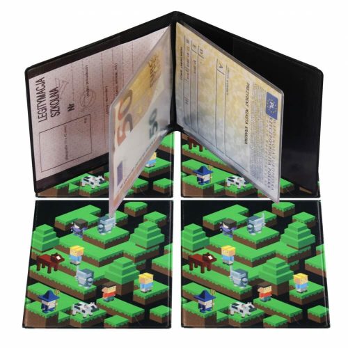 Igazolványtartó, kártyatartó, 2 betétlappal, Minecraft mintás