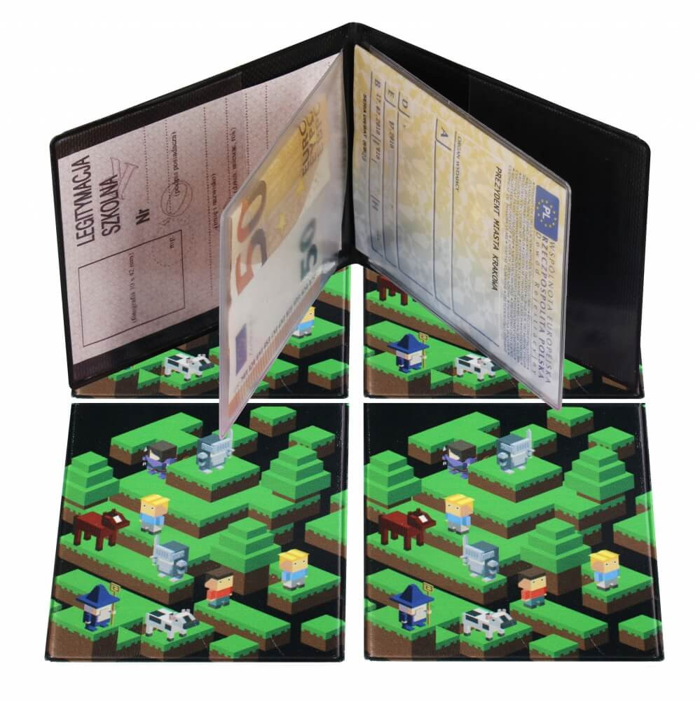 Igazolványtartó, kártyatartó, 2 betétlappal, Minecraft mintás. Méret: 9x11,5cm.