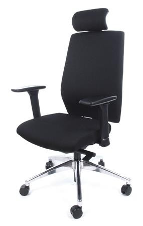 magas háttámlás irodai szék komfortos kialakítással, ergonomikusan formázott ülőlappal és háttámlával gázliftes magasságállítás egy mozdulattal állítható háttámlamagasság csiszolt alumínium lábcsillag állítható magasságú és billenthető nyaktámasszal szeleppel és pumpával állítható deréktámasz több ponton rögzíthető szinkronmechanika állítható ülőlap dőlésszög ülésmélység állítás kárpit: fekete szövet állítható magasságú karfával szállítjuk teherbírás: 135 kg szín: fekete ülőlap szélesség: 47 cm ülőlap mélység: 45 cm ülésmagasság: 44-57 cm háttámla magasság: 69-77 cm teljes magasság: 113-138