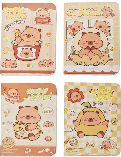 Kapibara notesz, A/7, keményfedeles, többféle változat. 7,5x10,5cm. Az ár 1 db-ra vonatkozik. Nem biztos, hogy mindegyik minta van raktáron.