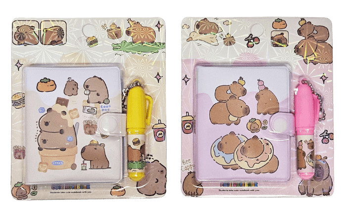 Kapibara notesz tollal, 5,7x7cm, többféle változat. A szett egy vonalas, mini noteszt és egy mini tollat tartalmaz. Nem biztos, hogy mindkét színben van készleten.