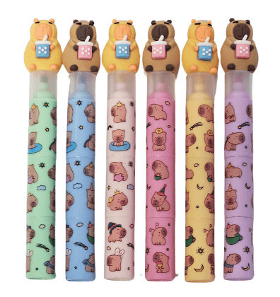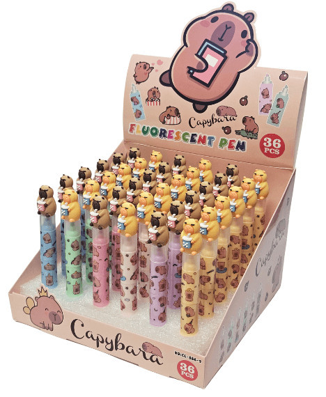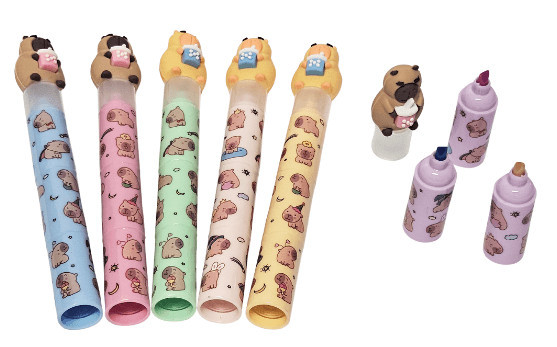 Kapibara szövegkiemelő, 3 színnel, többféle változat. Az ár 1 db-ra vonatkozik. Egy kapibarával mintázott szövegkiemelő, amely 3 különböző színű szövegkiemelő hegyet tartalmaz. Ezek a cuki szövegkiemelők hasznosak tanulás közben vagy jegyzeteléskor is.