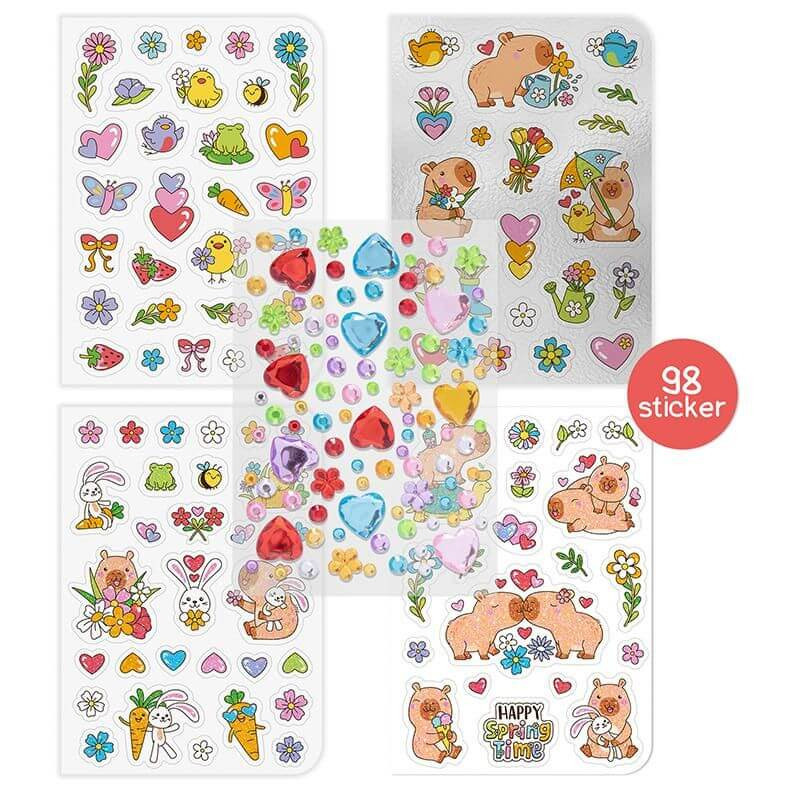 Kapibarás színezőkönyv matricákkal és strasszkövekkel. 20 oldalas színező 98 matricával. Méret: 10,7 cm x 14,8 cm x 0,5 cm