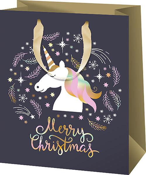 Karácsonyi ajándéktáska 33x27x14cm, nagy, unikornis