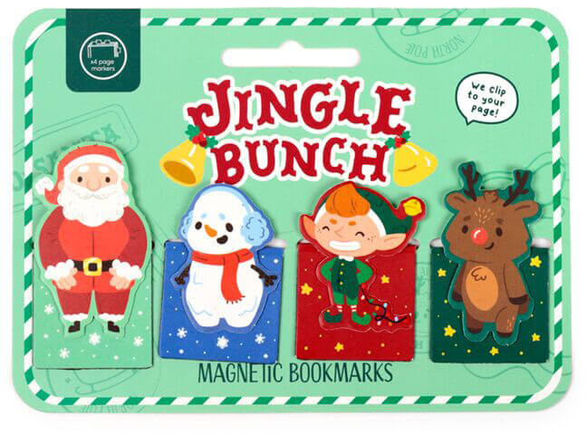 Karácsonyi mágneses könyvjelző, 4 db/csomag, karácsonyi csapat. Méret: 8x3x0,8cm
