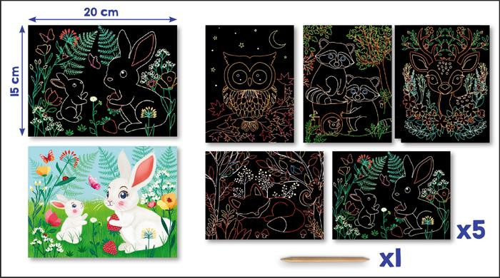 Képkarcoló készlet: Fedezd fel az 5 színes erdei állatot!