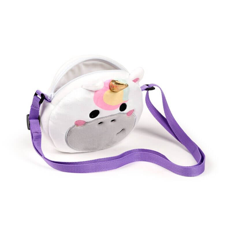Keresztpántos válltáska, 16x18x6cm, plüss, Édes Állatok, Astra, az Unikornis Anyaga: Poliészter (Táska és Vállpánt), Polipropilén (Cipzár & Vállpánt Állító Csat) Szabályozható Vállpánt: Igen