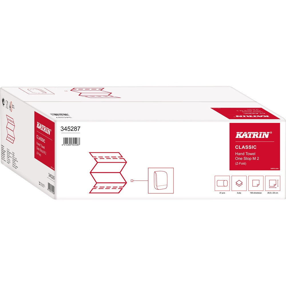 KÉZTÖRLŐ 2 RÉTEGŰ Z HAJTOGATÁSÚ 160 LAP/CSOMAG 25 CSOMAG/KARTON CLASSIC NONE STOP M2 KATRIN_34528 FEHÉRÍTETT