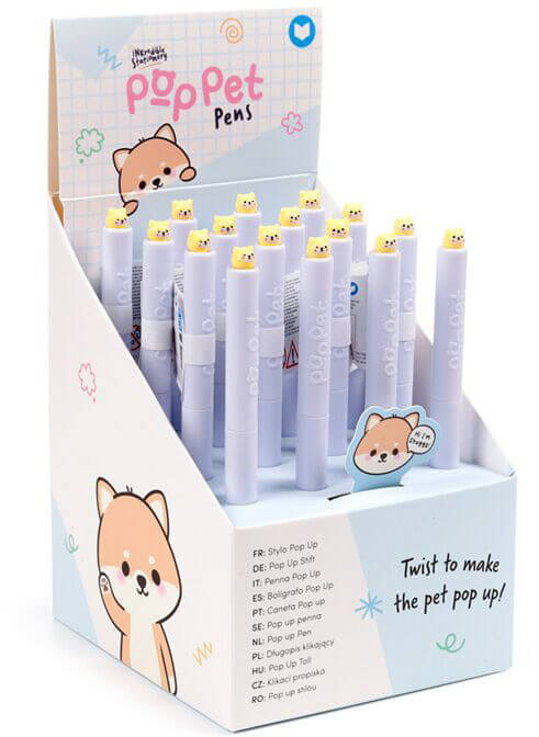 Kutyás toll kiugró figurával, Édes Állatok - Shiba Inu kutya. A tinta színe fekete. Ha bekapcsoljuk a tollat, "elbújik" a kutyus, ha kikapcsoljuk, "előugrik".