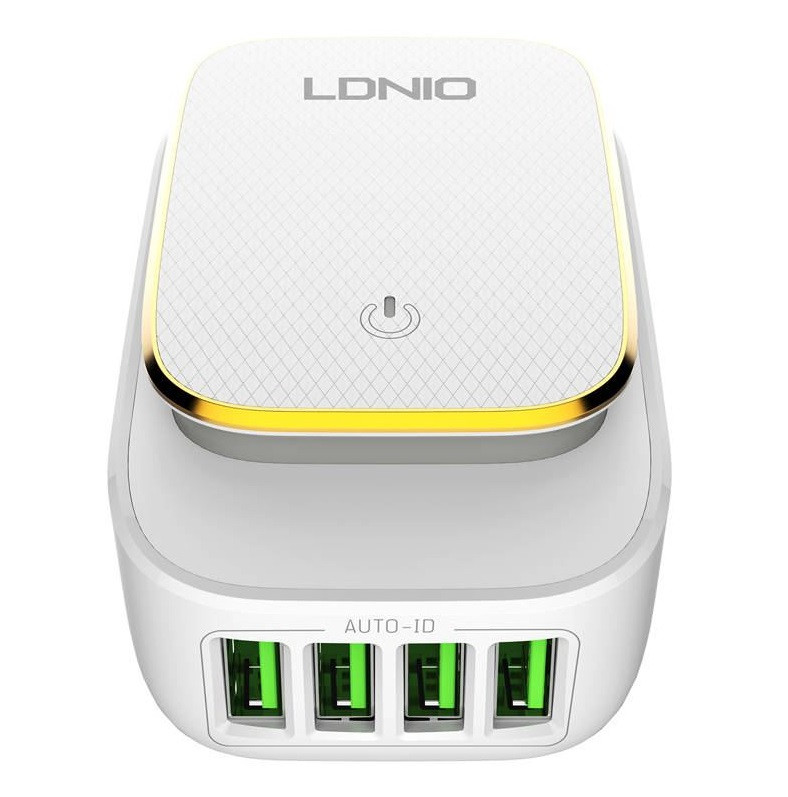 Az LDNIO A4405 egy praktikus hálózati töltő, amely éjszakai lámpaként is funkcionál. 4 USB porttal van felszerelve, és akár 4,4 A kimeneti áramot kínál. Lehetővé teszi az erős és a gyenge fények közötti választást is. Kiváló minőségű anyagokból készült és biztonságos használatot biztosít.