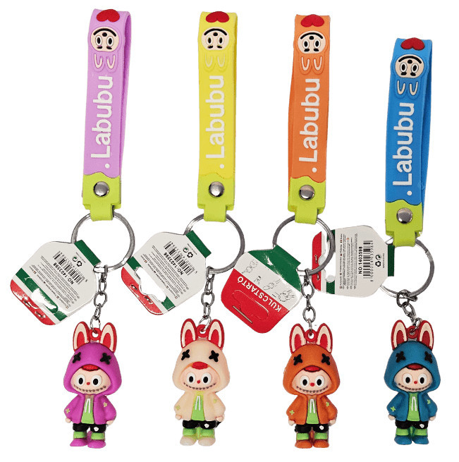 Labubu kulcstartó pánttal, műanyag, 4 féle