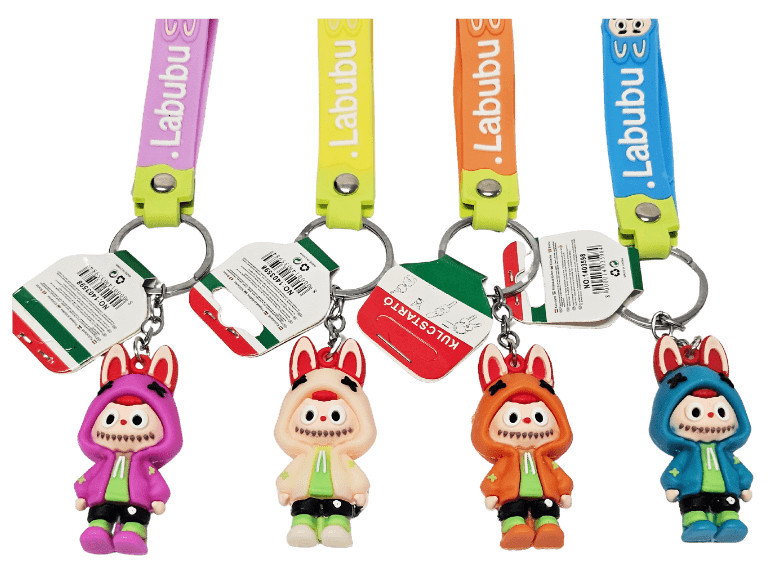 Labubu kulcstartó pánttal, műanyag, 4 féle. Egy figura kb. 5,5 cm magas. Az ár egy darabra vonatkozik, nem biztos, hogy mindegyik van készleten.