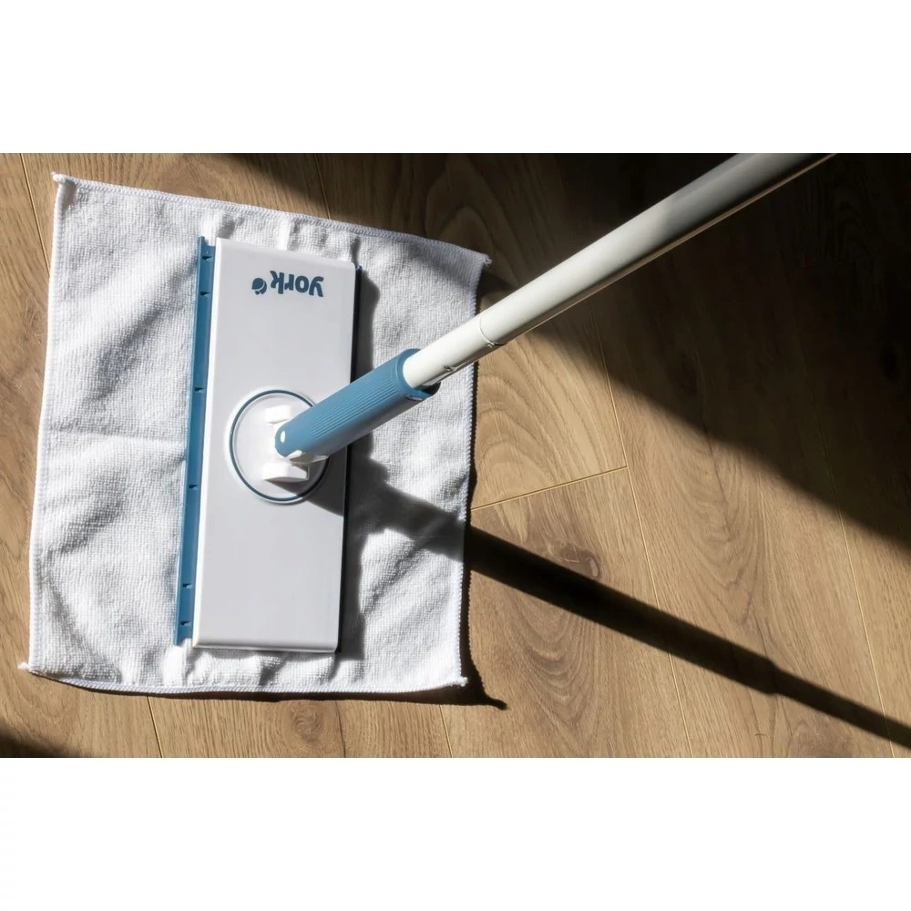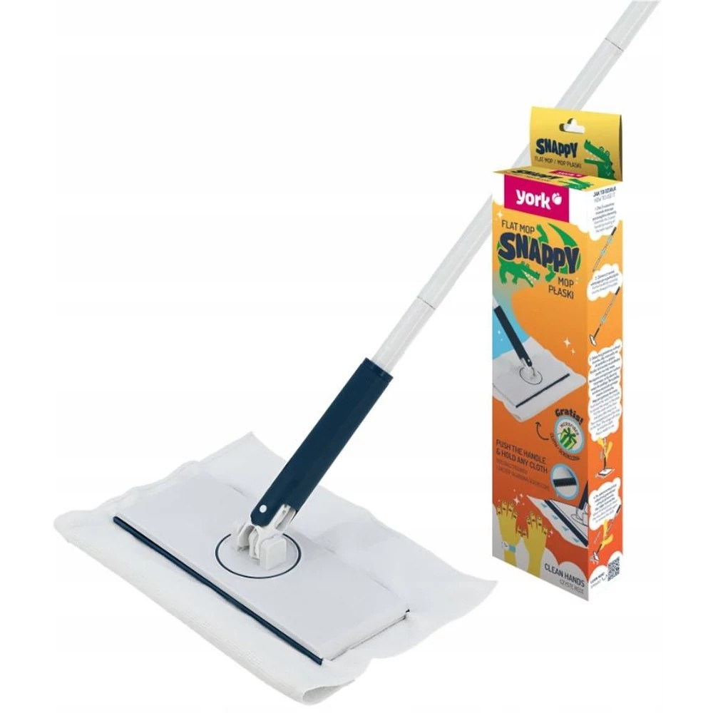York Snappy lapos felmosó sokoldalú eszköz bármilyen felület tisztítására. Az univerzális felmosó 360°-ban elforgatható fejjel van felszerelve. A mozgatható fejre könnyedén felhelyezhet bármilyen típusú ruhát, száraz és eldobható nedves törlőkendőket egyaránt. A könnyű, lapos felmosó könnyen befér a bútorok alá, és összegyűjti a port a sarkokból és a szűk résekből.