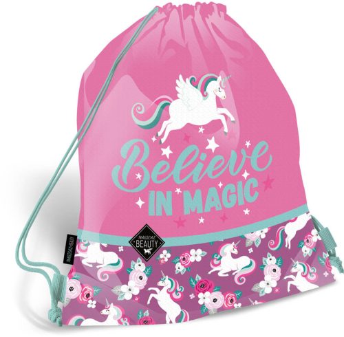 Magical Beauty tornazsák 33x43cm, Magic, unikornis. Standard tornazsák a tornaruha, cipő, papucs vagy úszófelszerelés tárolására. Zsinóros záródás, könnyű, tartós anyagból.