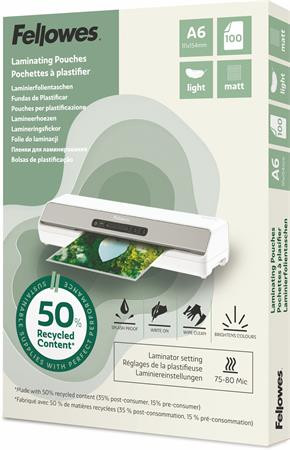 Meleglamináló fólia, 80 mikron, A6, matt, 100 db, FELLOWES "Light"