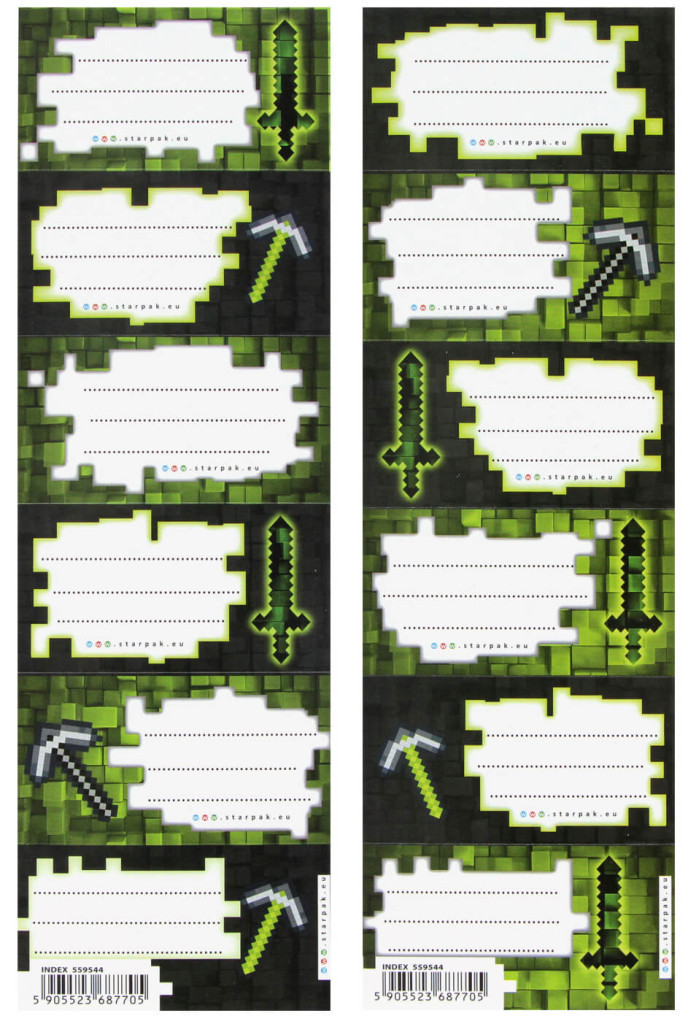 Minecraft mintás füzetcímke 6 db/ív, Starpak, többféle változat. Az ár 1 ívre vonatkozik.