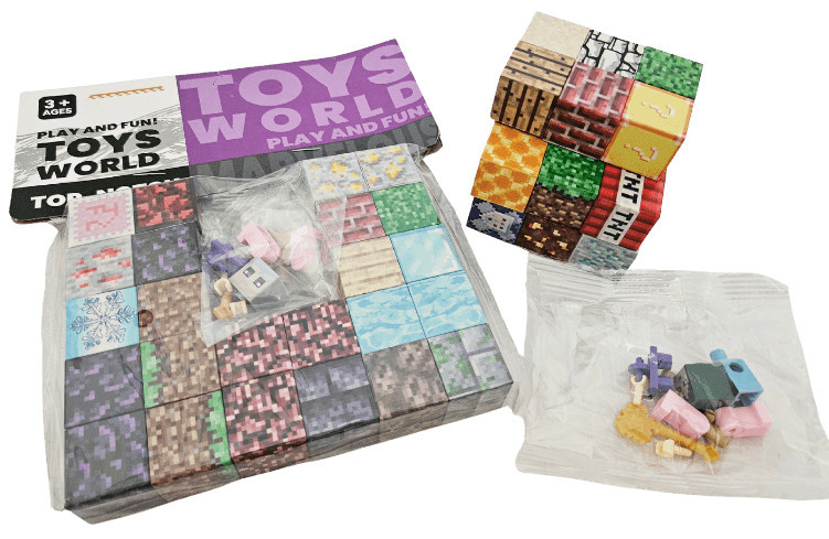 Minecraft mintás mágneses kockák (24 db) és egy összerakható minifigura