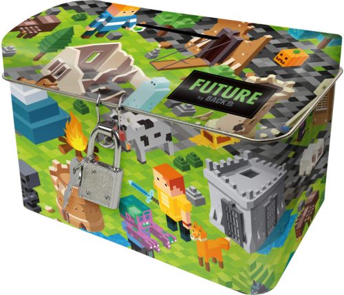 Minecraft mintás persely, szögletes, DF40. Fém persely lakattal és kulccsal. Méret: 12x8x8cm.