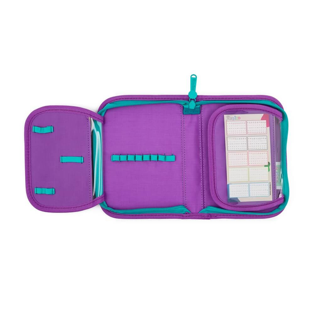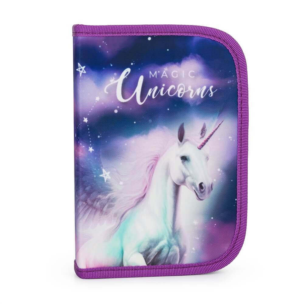 Pegazus tolltartó klapnis, üres, lila-rózsaszín. Méret: 14x20,5x3,5cm. Üres tolltartó, 25 gumis hellyel.