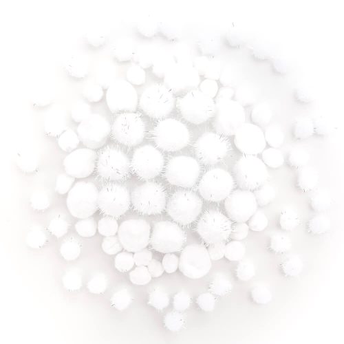 Pom-pom, fehér színű, 85 db-os. Használható különböző kézműves tevékenységekhez. (a 2., 3. és 4. kép illusztráció) Mennyiség: 85 db Méret: 1 cm -30 db akril pompom 2 cm -10 db akril pompom 1 cm -30 db csillogó pompom 2 cm -15 db csillogó pompom
