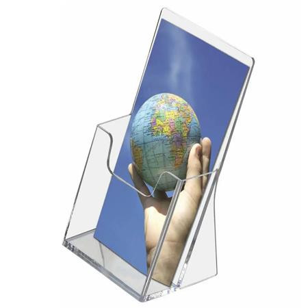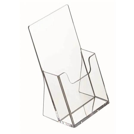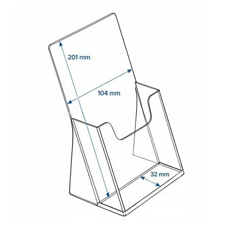 Az 1/3 A4 (DL) méretű asztali szórólaptartó elegáns és praktikus megoldás prospektusok, menük vagy termékleírások kihelyezésére.