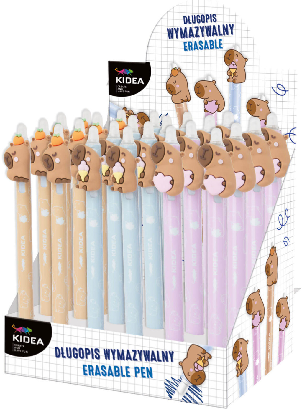 Radírozható golyóstoll, állatos, kapibara, Kidea, többféle. Az ár egy darabra vonatkozik, viszonteladók vegyesen kapják.
