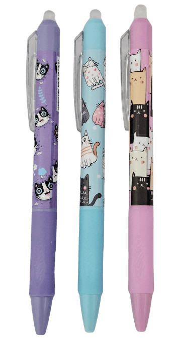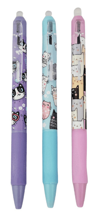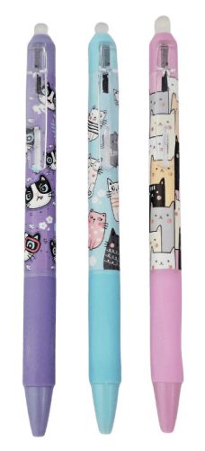 Radírozható zseléstoll, nyomógombos, 0,5mm, cicás
