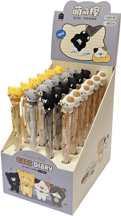 Radírozható zseléstoll, nyomógombos, 0,5mm, cicás, többféle változat. A cicával radírozható ki az írás. Az ár egy darabra vonatkozik, nem biztos, hogy mindegyik van készleten.