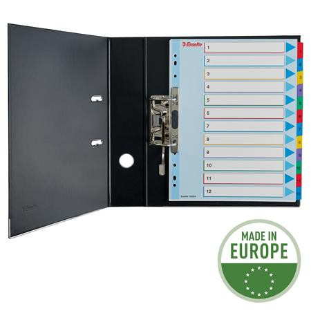 - többször használható regiszter élénk színkombinációkban - újraírhatő előlap nagyméretű téglalapokkal a tartalom feltüntetésére - újraírható, karton regiszter megerősített fülekkel és lefűzőrésszel - a laminált előlapon könnyen feltüntethető és módosítható/ felülírható a tartalom - találja meg a keresett információt egy szempillantás alatt! - hagyományos, 11-lyukú lefűzőrész - 1-12 felirattal rendelkező regiszter fülek a dokumentumok gyors eléréséhez - erős, 160 g-os karton alapanyag - az A4+ méretű regiszterek szélesebbek a lefűzhető tasakoknál, így segítségükkel az iratrendezőbe lefűzött tasakok is könnyen rendszerezhetők Gyártó/első EU forgalmazó elérhetősége: Esselte Kft. 1139 Budapest, Lomb u. 37-39. A ép. II. 8. hungarymarketing@acco.com https://www.accobrands.com/brands/